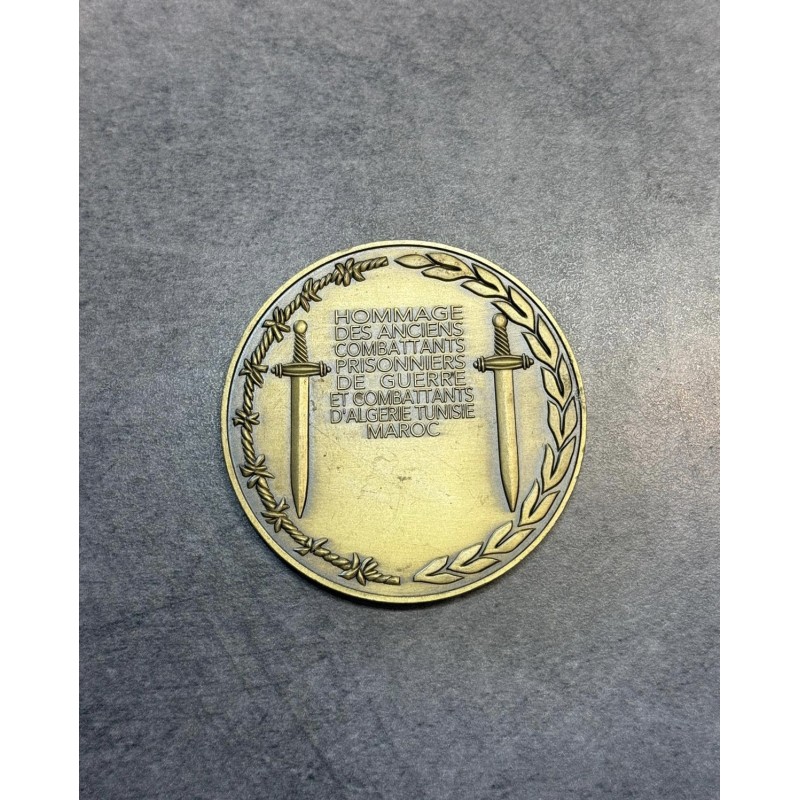 médaille de table en bronze (ou métal doré) de la FNCPG-CATM (Fédération Nationale des Combattants Prisonniers de Guerre et Combattants d’Algérie, Tunisie, Maroc).