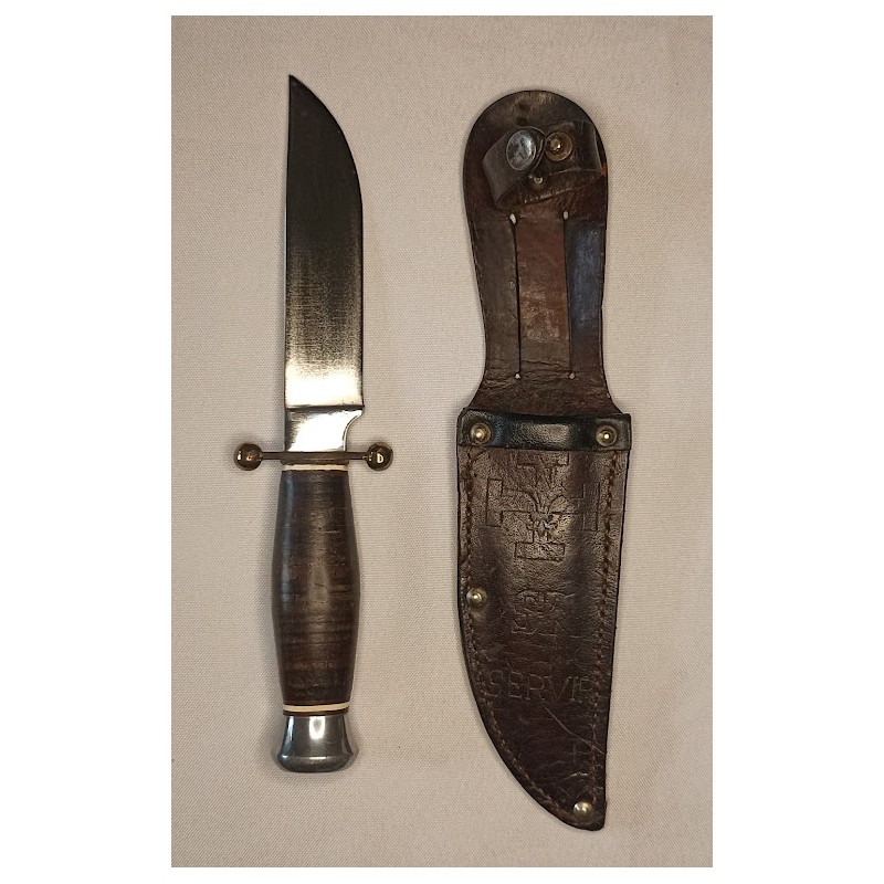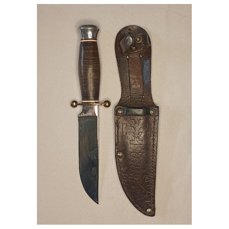 couteau chasse scout chantier jeunesse CJF Sabatier JEUNE inox made in france cuir 40/50 vintage collection