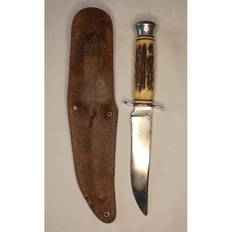 couteau chasse scout CJF fabrication ETAT inox made in france cuir 40/50 vintage collection