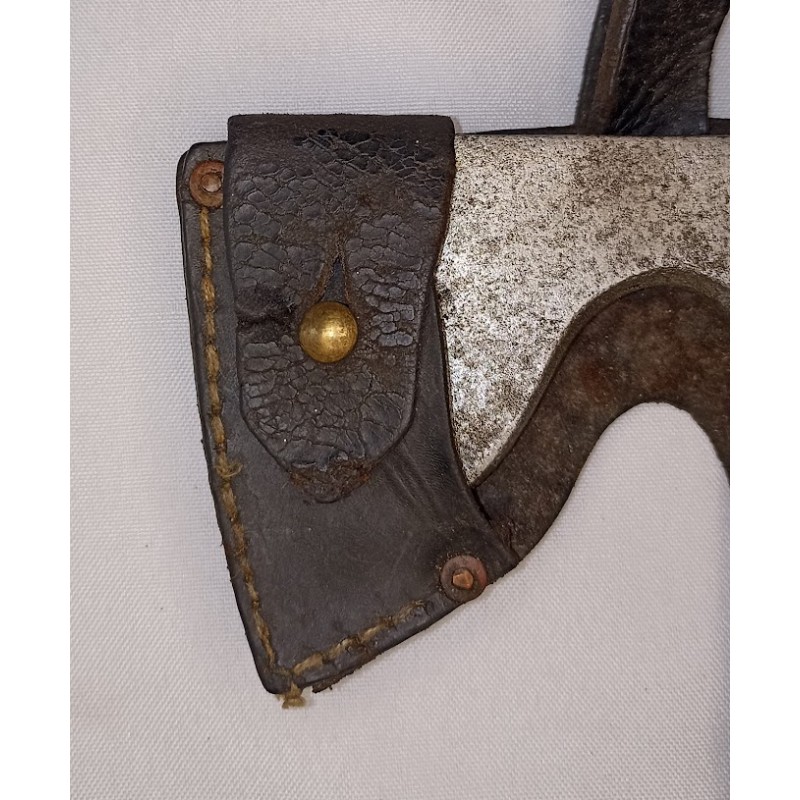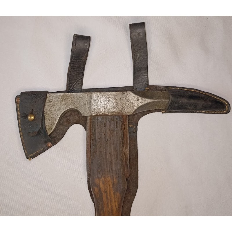 Pic hache model 1899 avec son étui cuir de transport pionnier de l'armée prussienne période 14/18 , cuir très fragile hache en assez bon état , aucun marquage de visible .(voir photos)