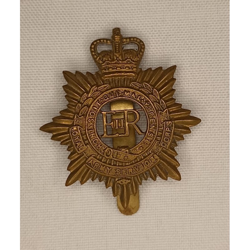 insigne coiffure casque britannique cap badge british époque reine Elisabeth 2 royal army service corps régiment militaria collection