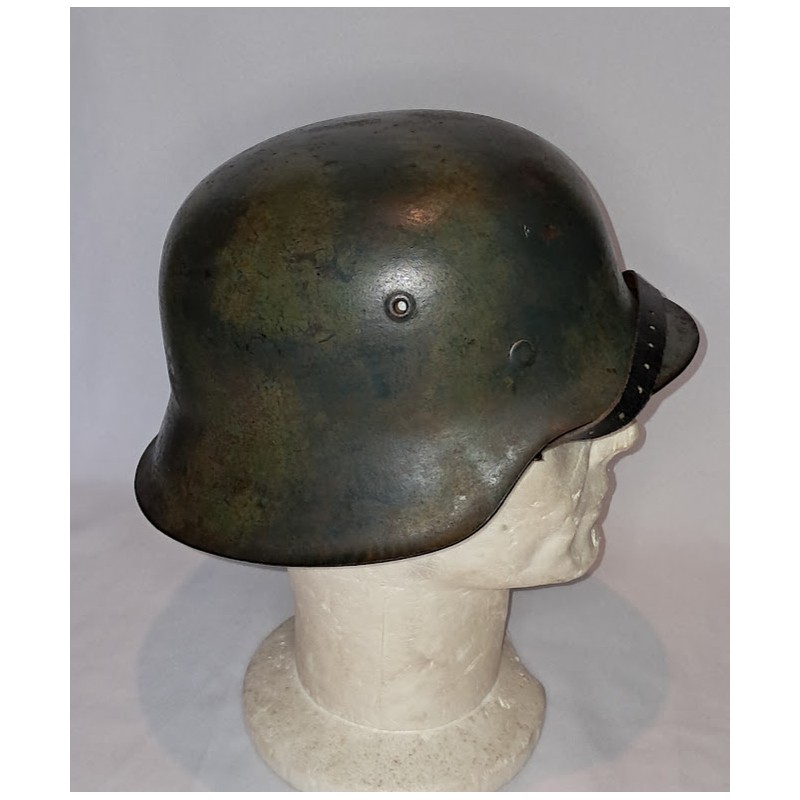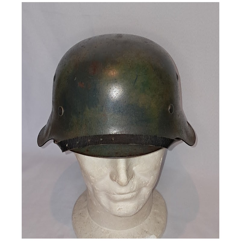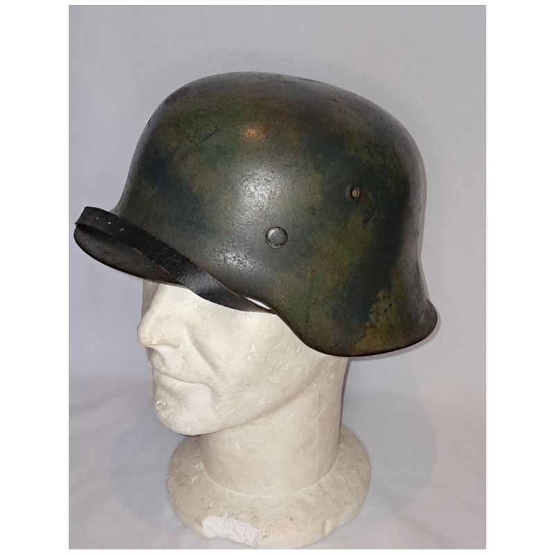 casque camouflage coque cerclage rivets luftwaffe wehrmacht kriegsmarine pompier élite coiffure camo 39/45 model 42 troupes allemandes 2GM militaria collection