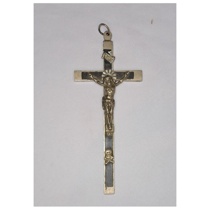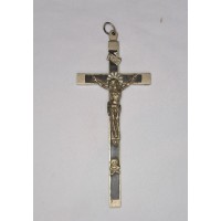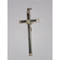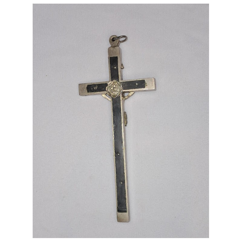 croix crucifix catholique ancien modèle 19ème siècle argenté bois ébène bon état
