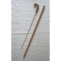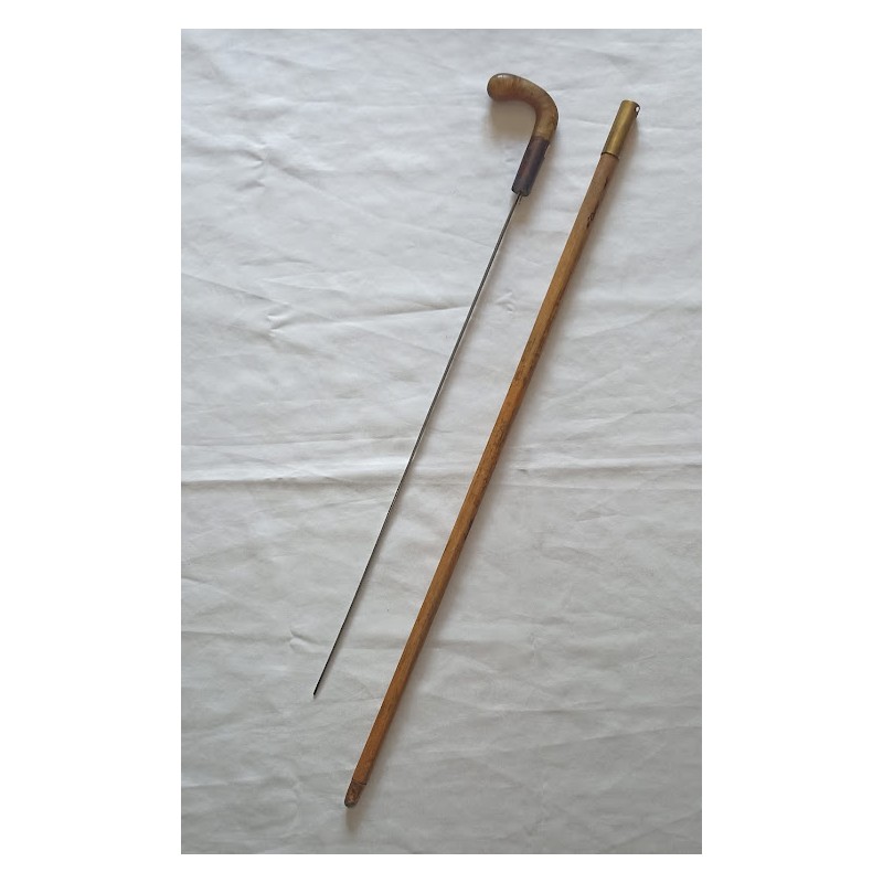 canne à système épée colonial pommeau corne 1900 vintage défense militaria collection